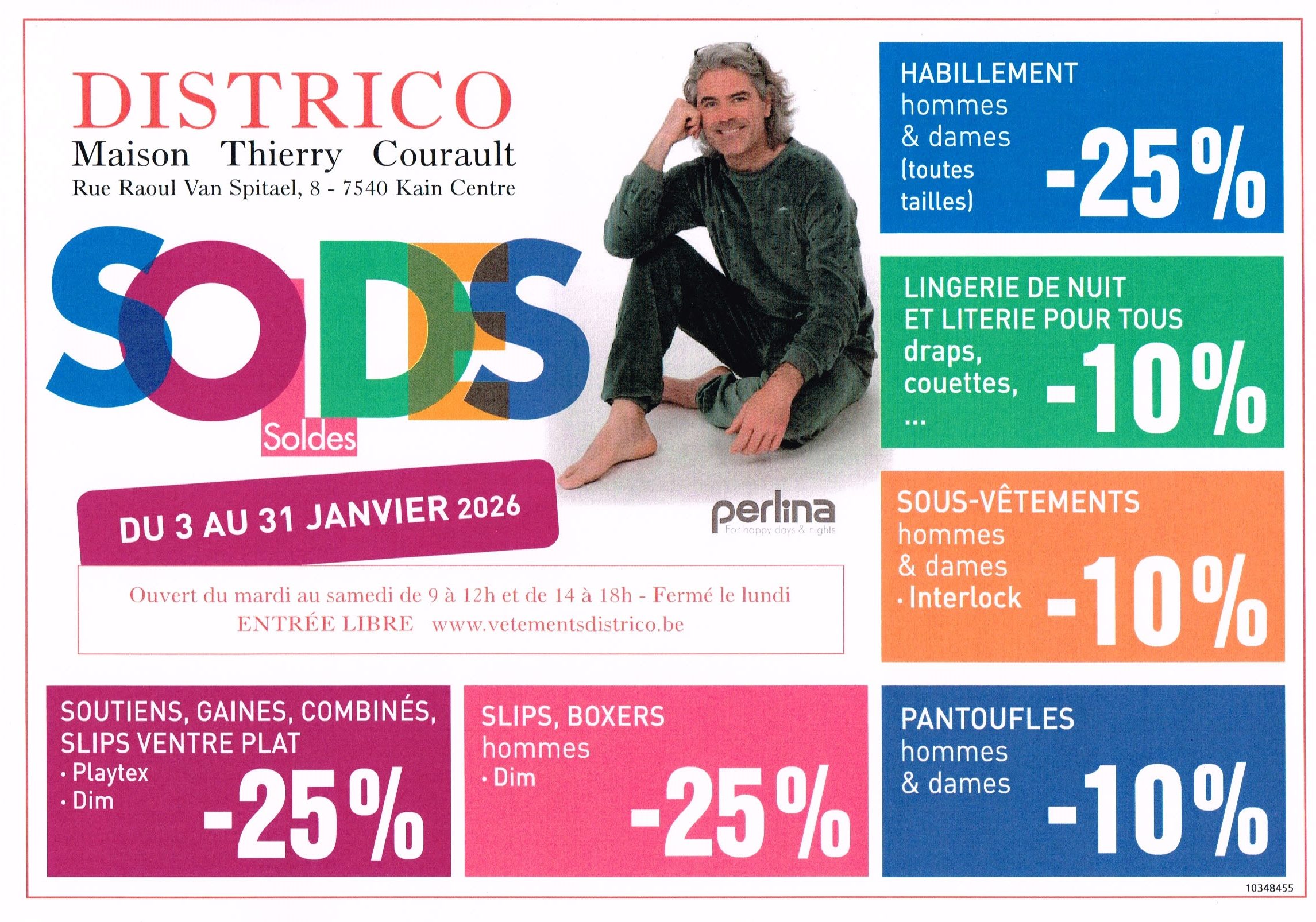 Le magasin de vêtements DISTRICO à Kain est spécialisé dans le prêt à porter dames et hommes ainsi que dans la lingerie classique. DISTRICO propose des articles que sa clientèle d’habitués ne trouve pas ailleurs. Les clients viennent parfois de très loin pour se rendre chez DISTRICO. L’offre de prêt à porter de DISTRICO va jusqu’à la taille 60 pour les dames et la taille 70 pour les hommes. DISTRICO vend aussi de la literie, de la lingerie de nuit et des pantoufles. Le personnel du magasin, tous membres de la famille, accueille et conseille les clients.